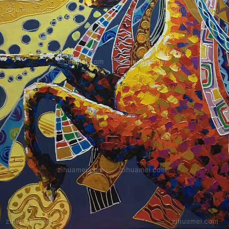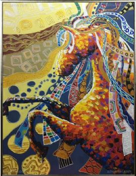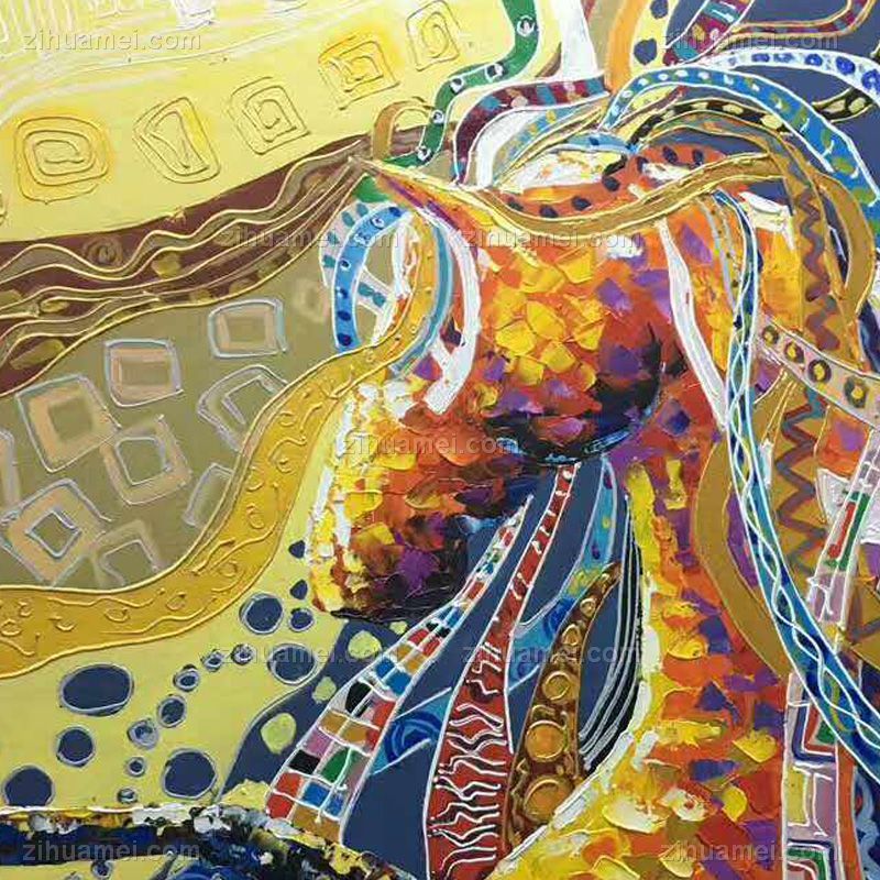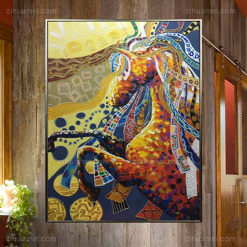 • 纯手绘手工家庭挂画酒店挂画玄观中式挂画多彩的马 装饰画 线条框 DCDM02