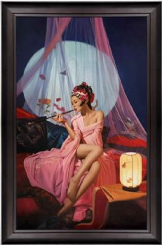 • 精品写实抽袋烟的美女人物油画纯手绘手工油画人物