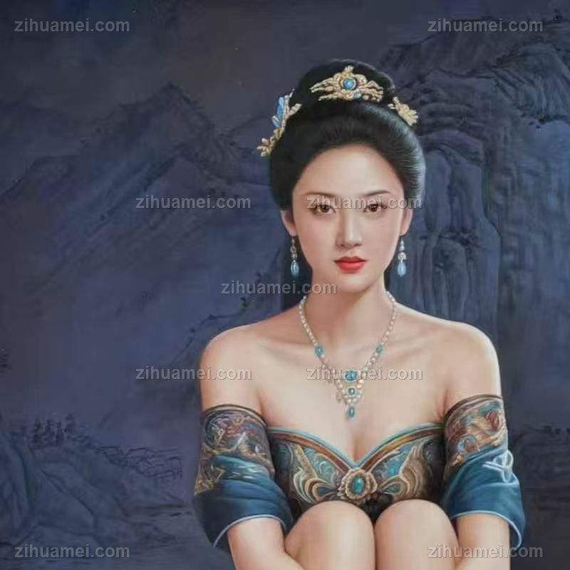 中式美女人物肖像图纯手绘人物油画写实美女图 手绘