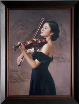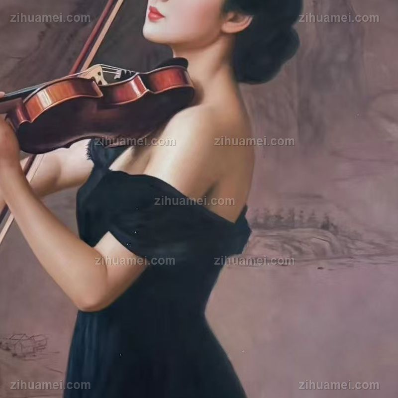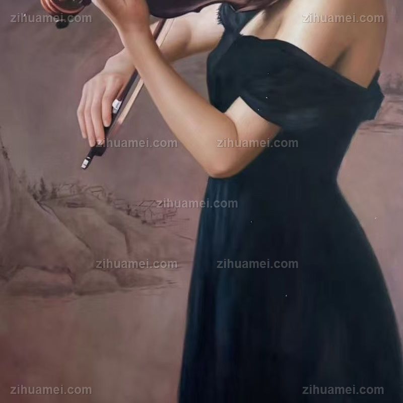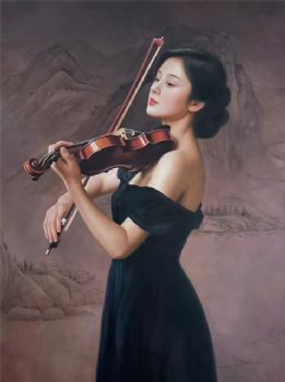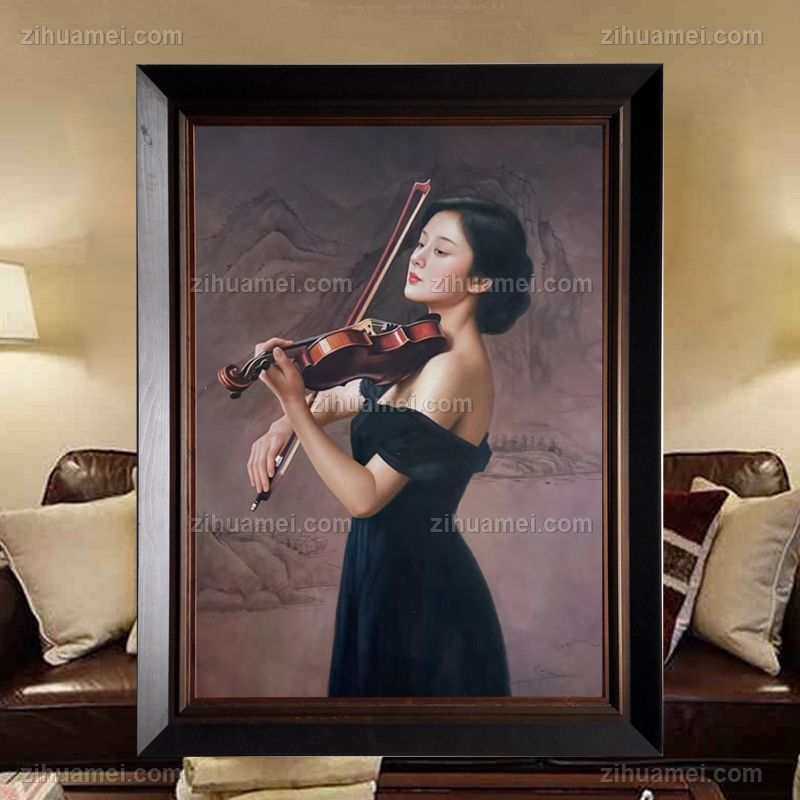 • 纯手绘手工人物写实油画拉提琴的艺术家