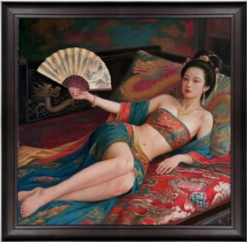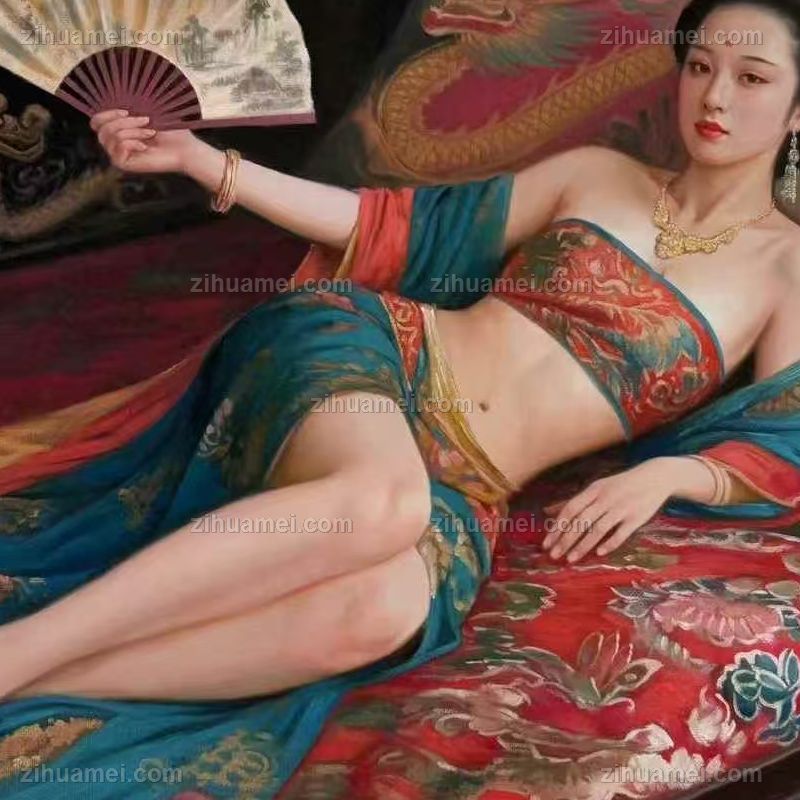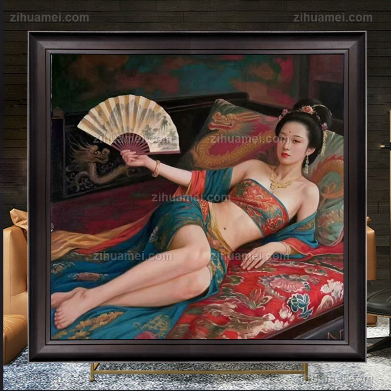 • 油画人体人物布面油画半躺美女写实油画纯手绘手工人物画
