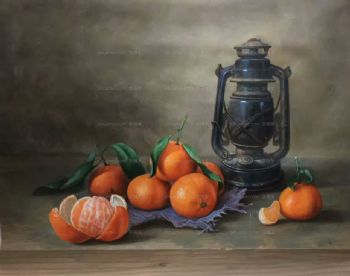 • 中式写实油画 效果非常漂亮 煤灯与桔子 十五年功底画师绘画 欢迎预订