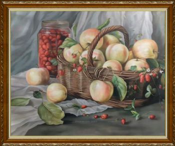• 中式写实油画 效果非常漂亮 竹藤篮子 桃 十五年功底画师绘画 欢迎预订