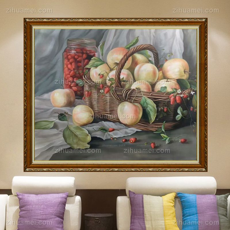 精品水果静物写实油画纯手绘苹果图客厅餐厅挂画 手绘