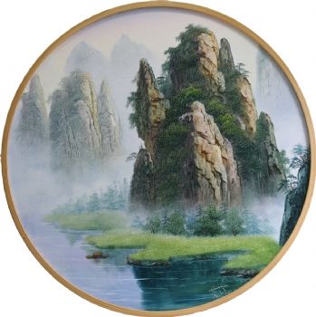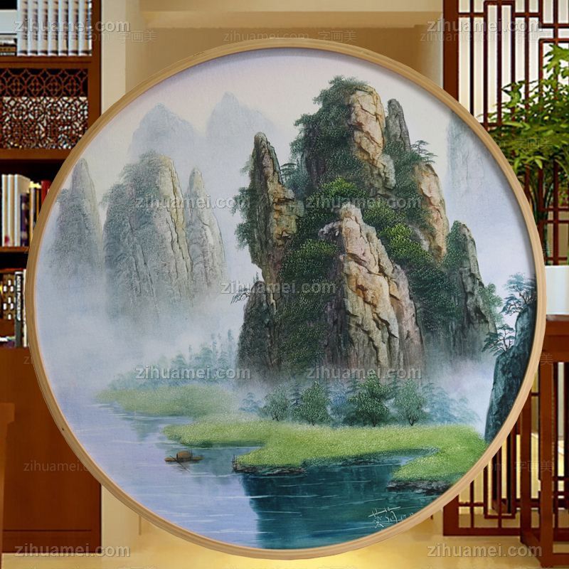 • 手绘刀画 山水画 圆形油画 60*60CM 作品非常漂亮 立体感很强 家庭挂画003