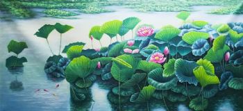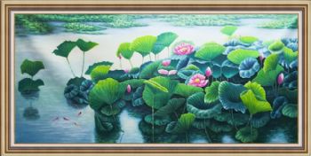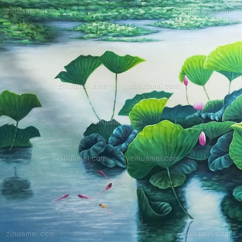 荷花池塘 景色优美 年年有余 和谐 中式油画