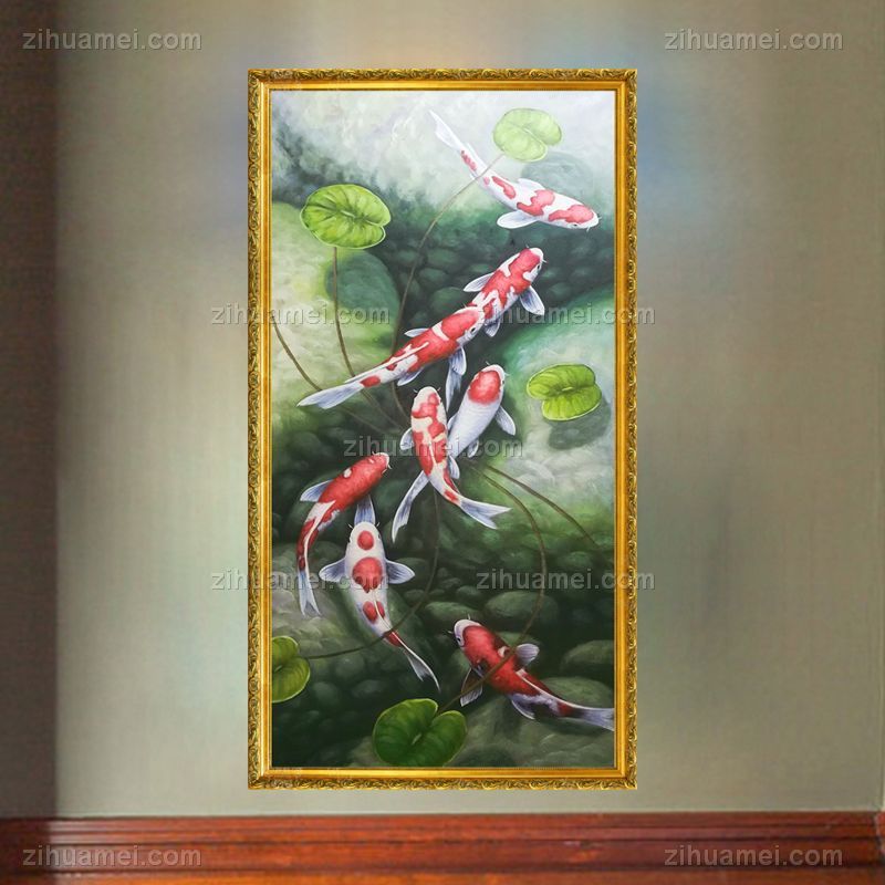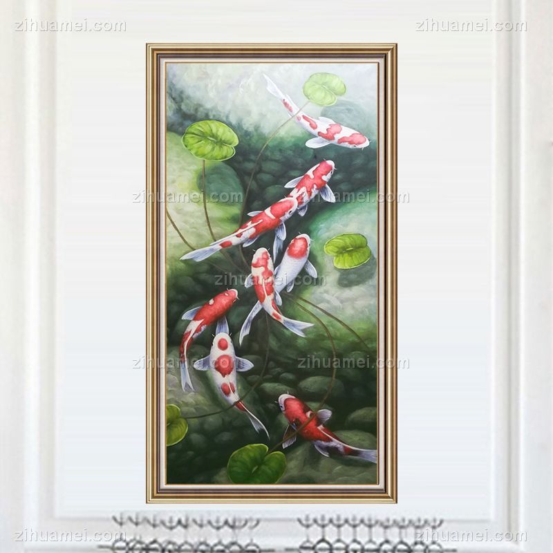 玄关九鱼图纯手绘写实锦鲤油画作品实木外框 手绘