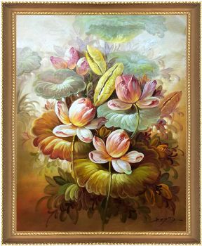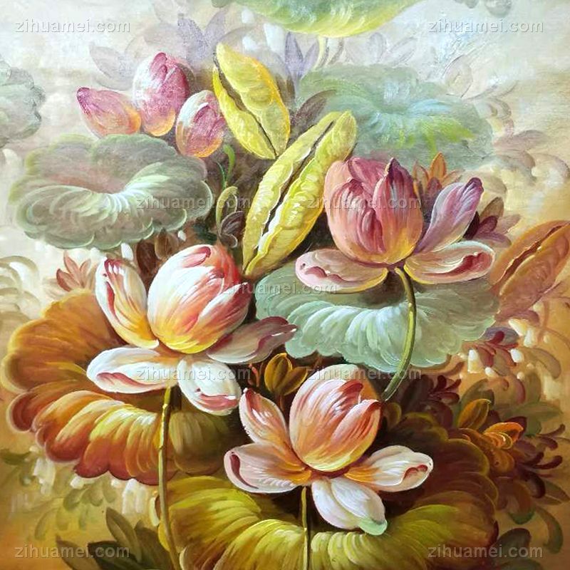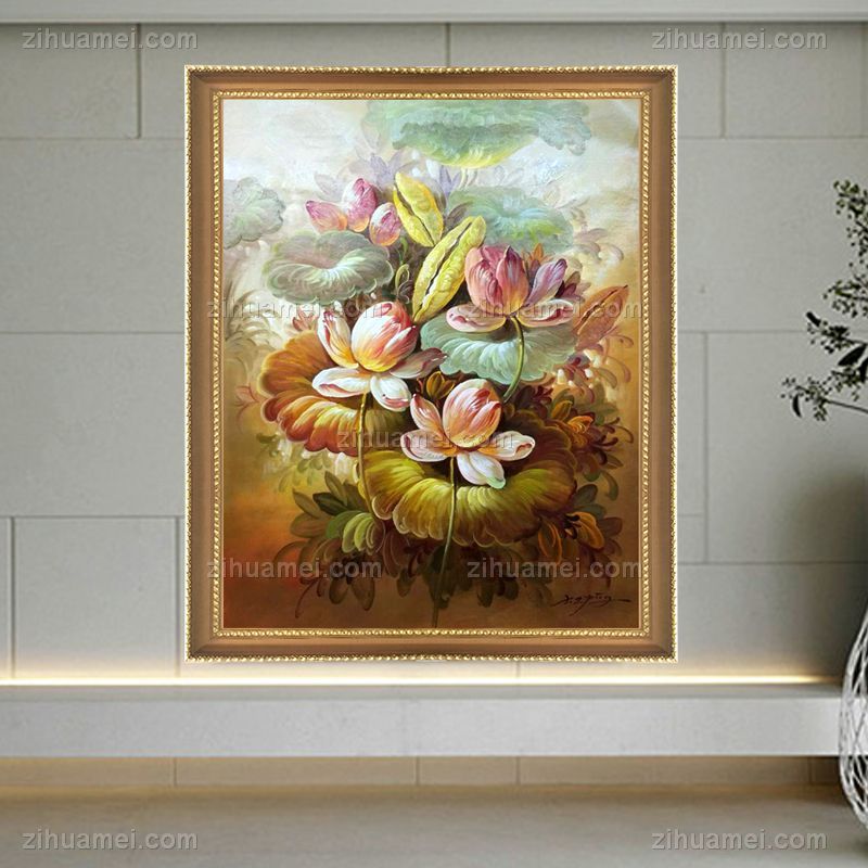荷花锦鲤风景油画荷花池风景油画纯手绘油画 手绘