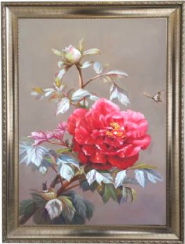 纯手绘竖幅精品牡丹油画写实花卉油画实木画框 手绘