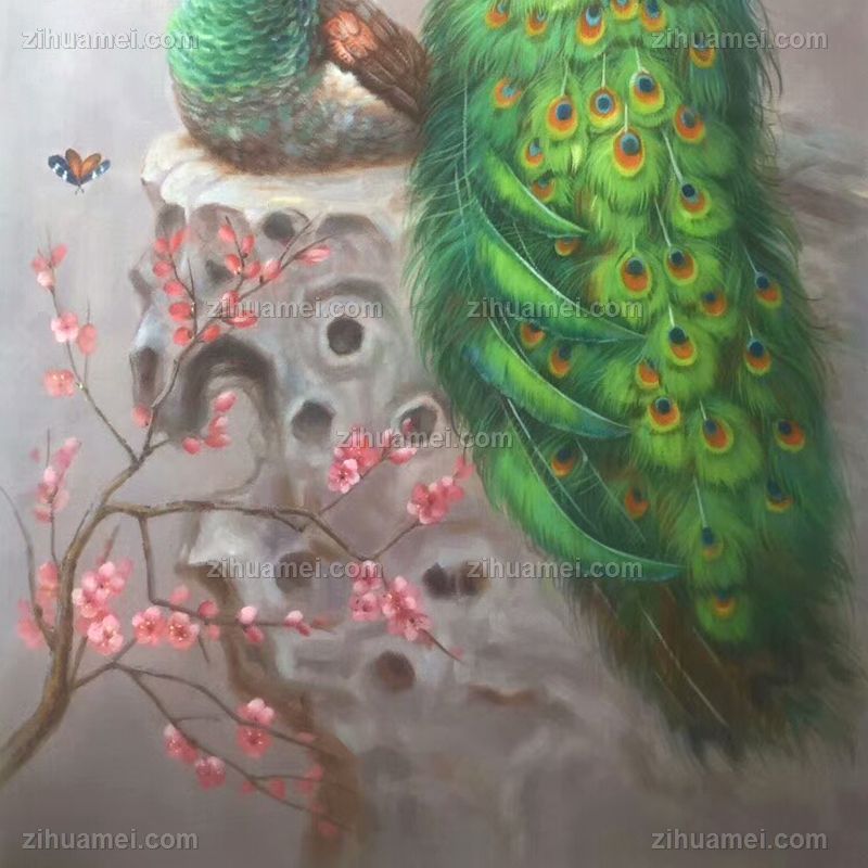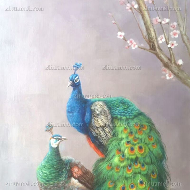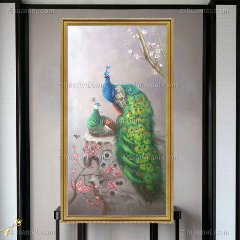 • 纯手绘手工 双孔雀 高贵 孔雀寓义荣华富贵 中式油画 家庭挂画