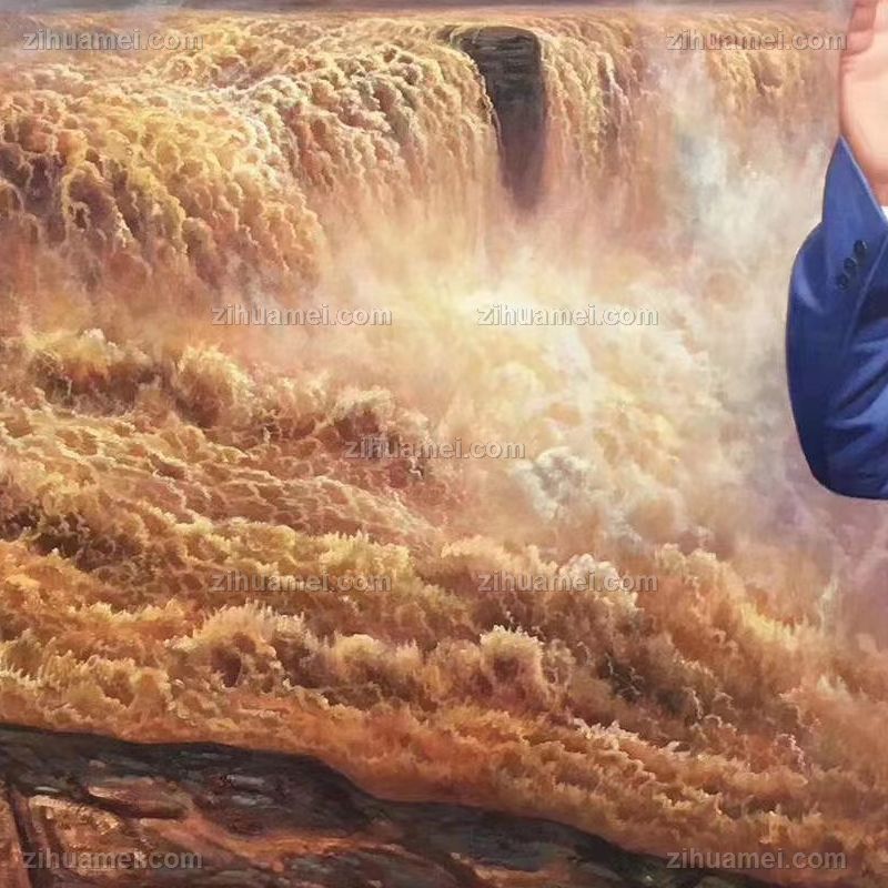 • 纯手绘手工人物肖像油画江山如此多娇中式油画一代伟人毛泽东黄河油画作品