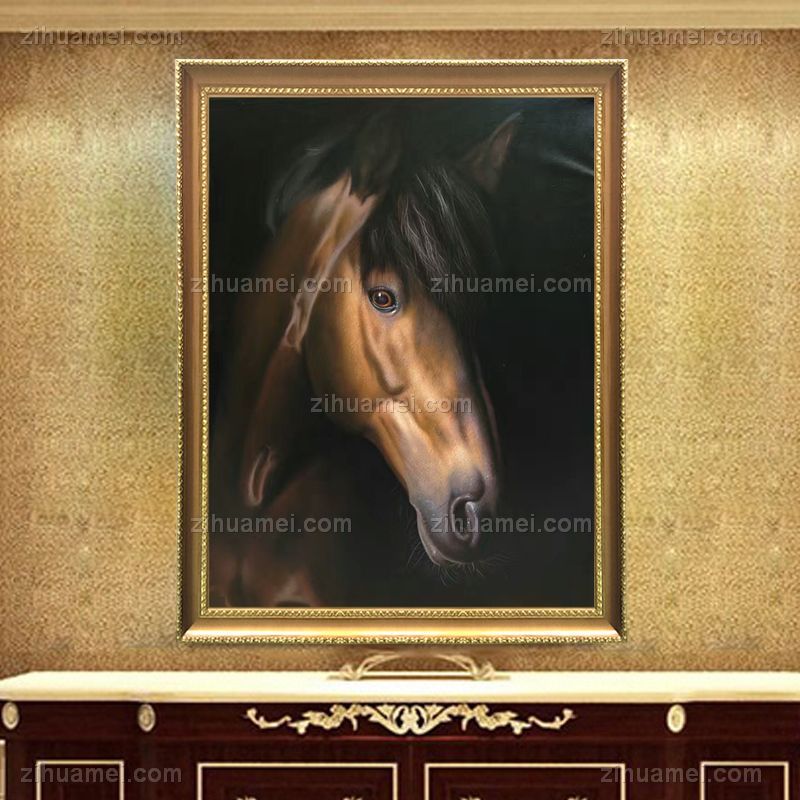 • 纯手绘手工 中式油画 骏马 马头 高贵气质 特别适合青年俊才 家庭挂画 酒店挂画 办公室挂画D