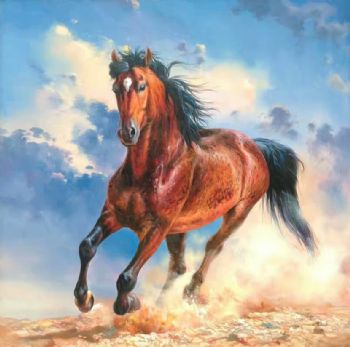 中式油画 骏马 奔跑跳动