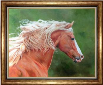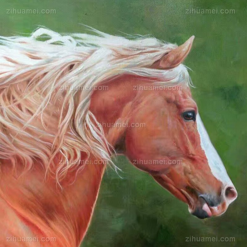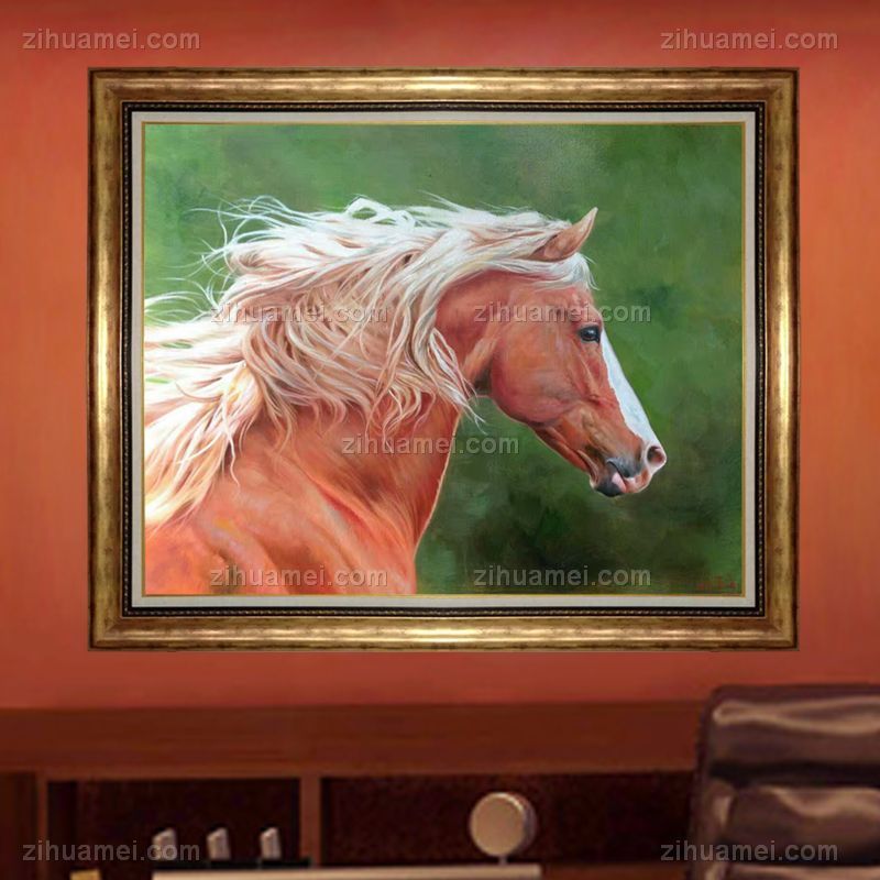 精品花卉白马图纯手绘写实动物油画实木画框 手绘