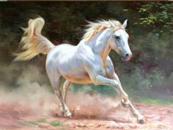 中式油画 骏马 奔跑跳动 高贵气质