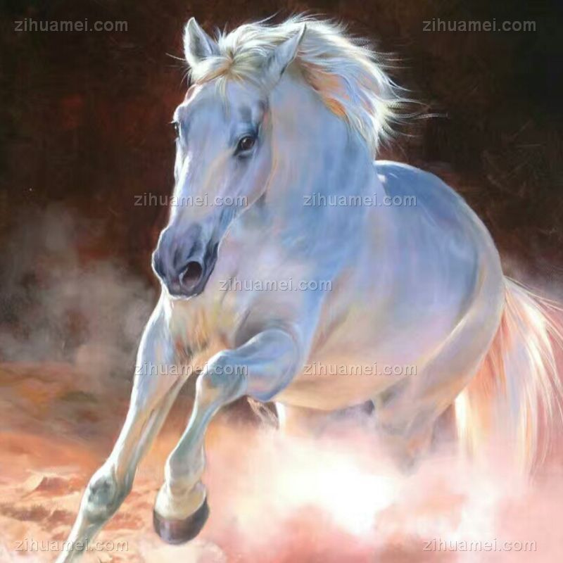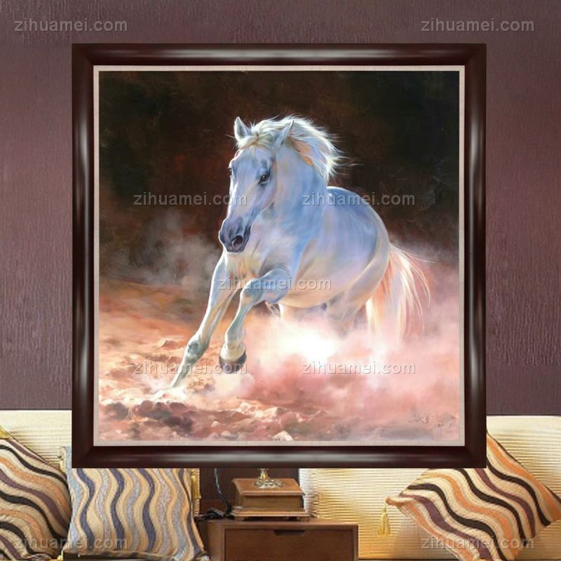 精品花卉白马图纯手绘写实动物油画实木画框 手绘