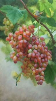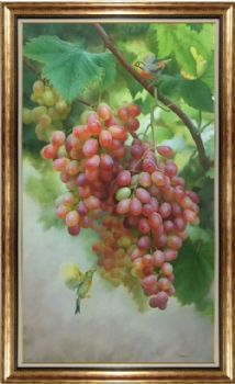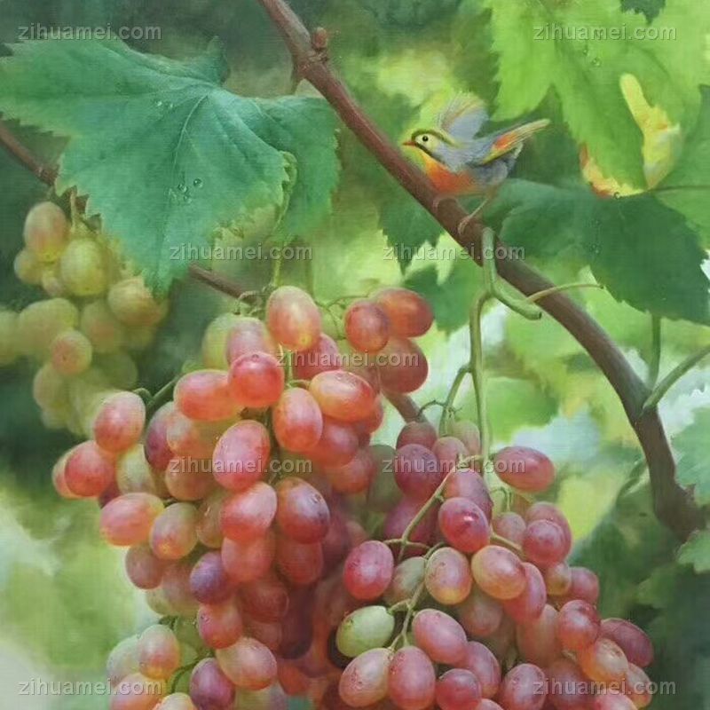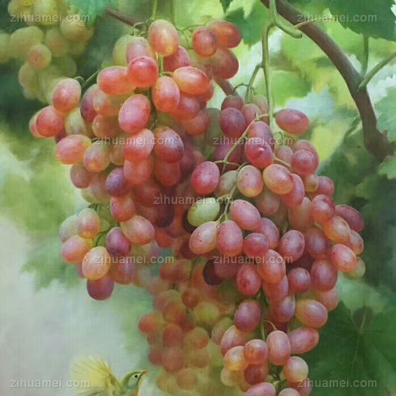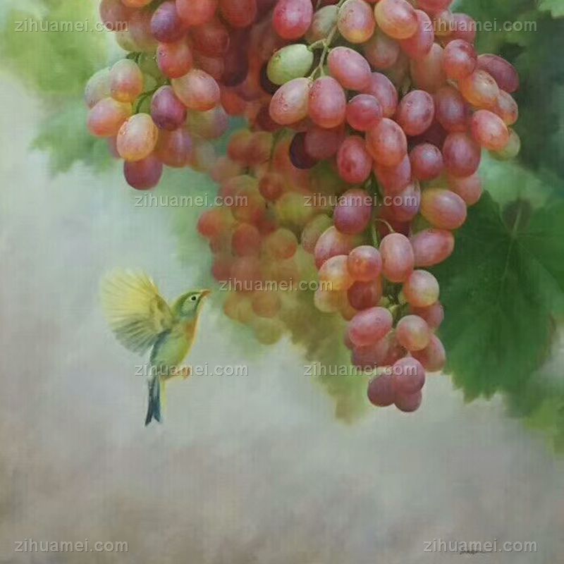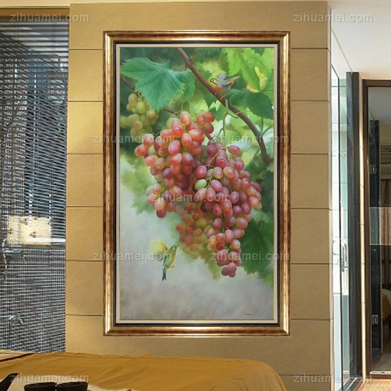 • 纯手绘手工 中式油画 写实油画 飞鸟与红提 家庭挂画 酒店挂画 办公室挂画
