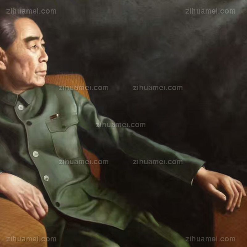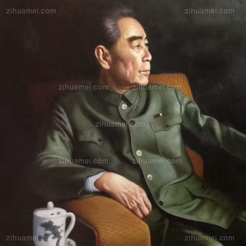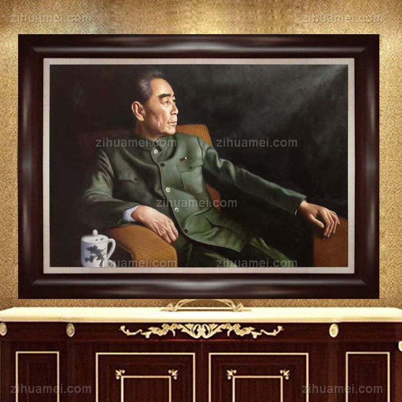• 纯手绘手工 人物肖像油画 伟人 周恩来 中式油画 家庭挂画 酒店挂画 办公室挂画