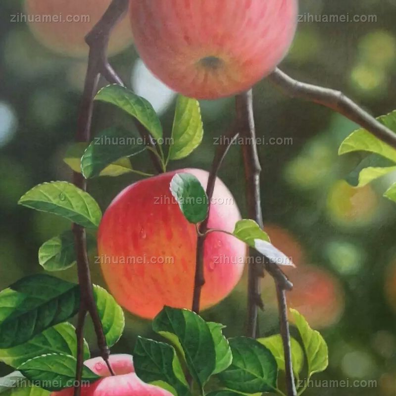 中式油画 超写实油画 红苹果