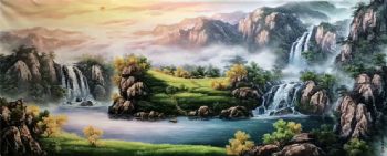 金山聚宝盆山水风景油画纯手绘大厅山水风景油画 手绘