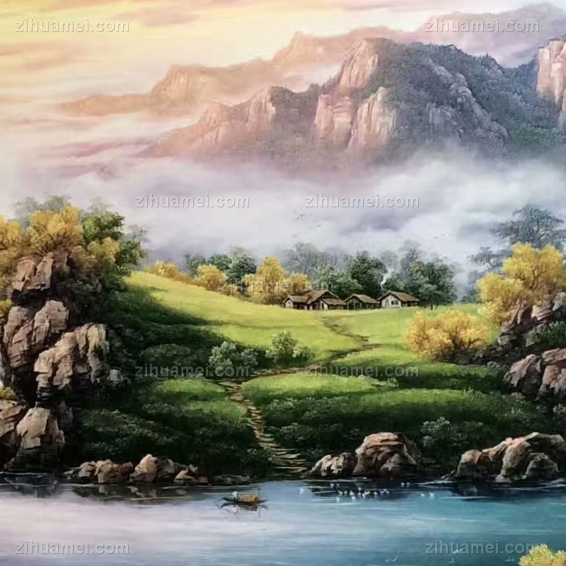 金山系列风景油画纯手绘油画装饰画实木外框 手绘