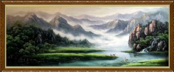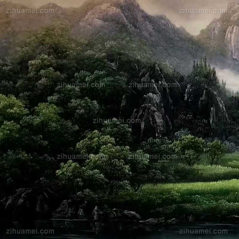 山水油画 聚宝盆