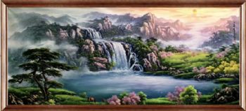 刀画 山水油画 聚宝盆 家庭挂画