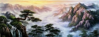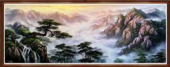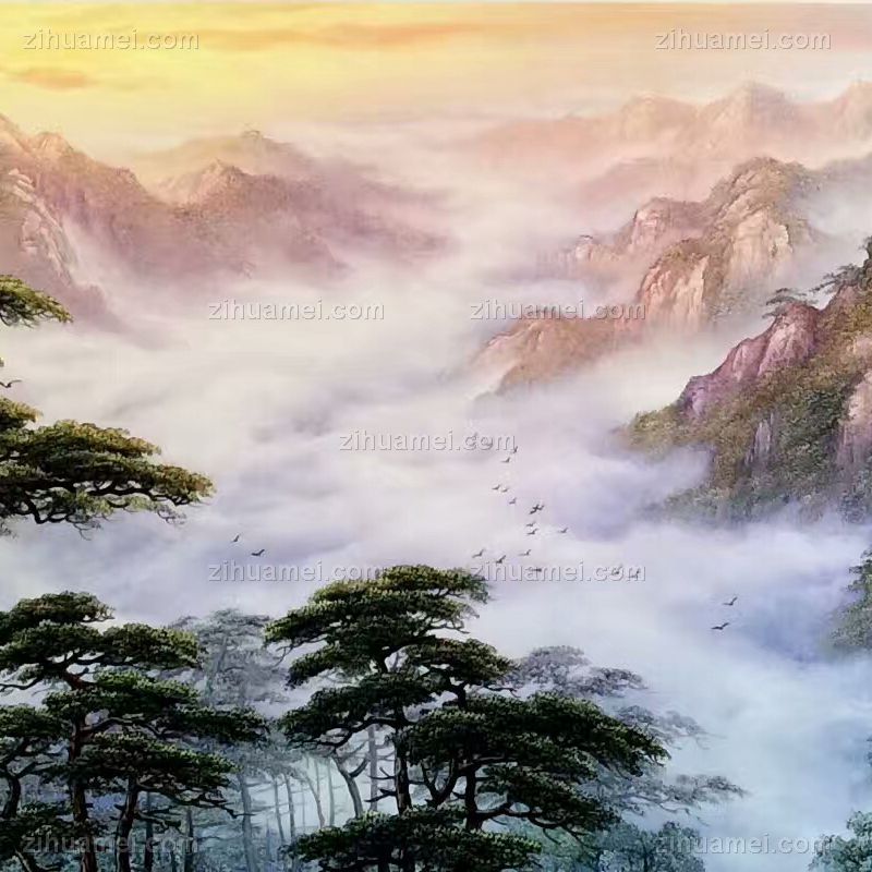 刀画 山水油画 迎客松与高山