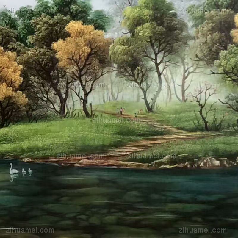 • 实力派画家 手绘油画 油画风景 刀画 山水油画 森林 水流 天鹅 家庭挂画 办公室挂画 酒店挂画