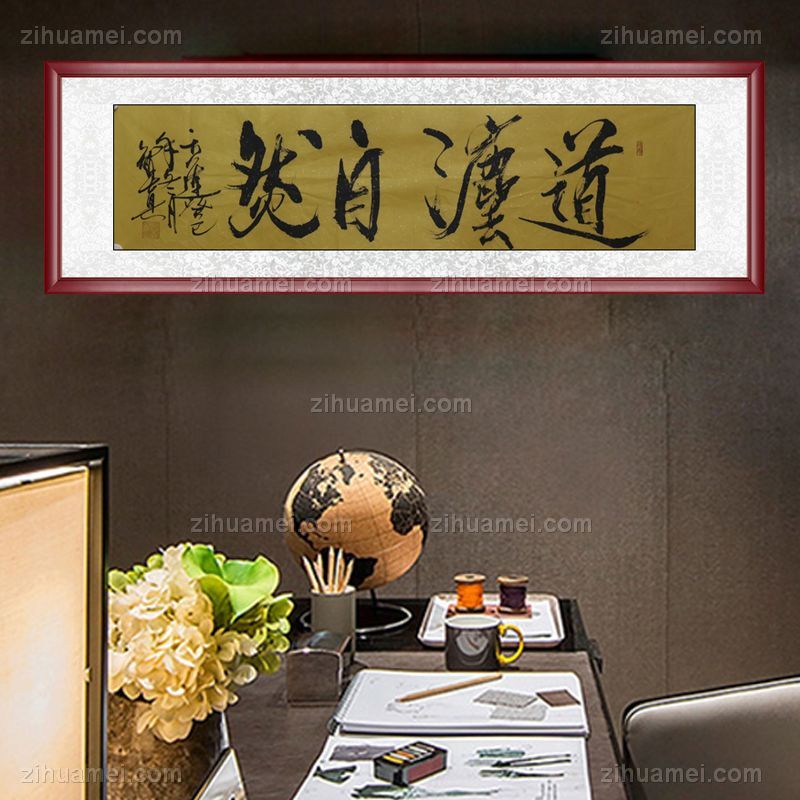 • 手绘 手工 国画 书法作品 草书 道法自然 典雅红褐实木框 家庭挂画 办公室挂画
