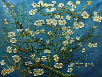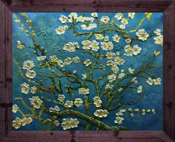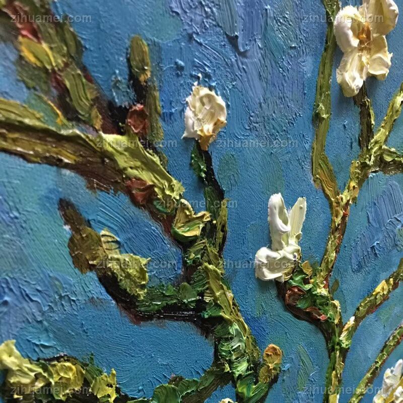 • 梵高 盛开的杏花 纯手绘油画 实木画框 高档大幅厚油颜料花卉墙画