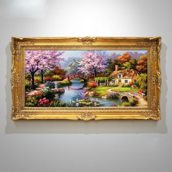 托马斯托马斯油画美式挂画实木框角花框手绘手绘油画客厅风景油画客厅装饰油画美式手绘油画角花框实木角花框实木框