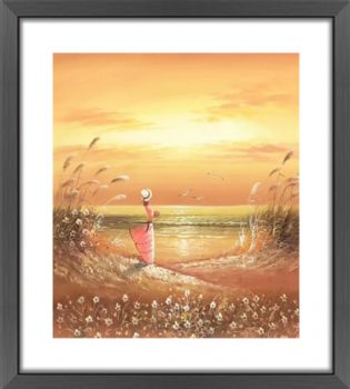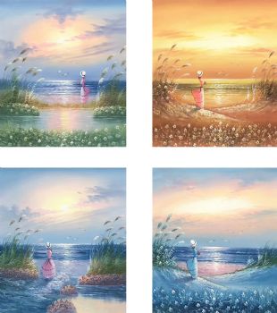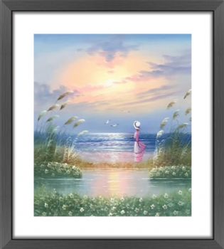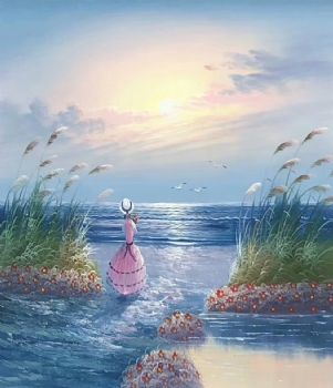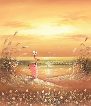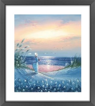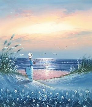 沙滩女孩油画海景装饰画