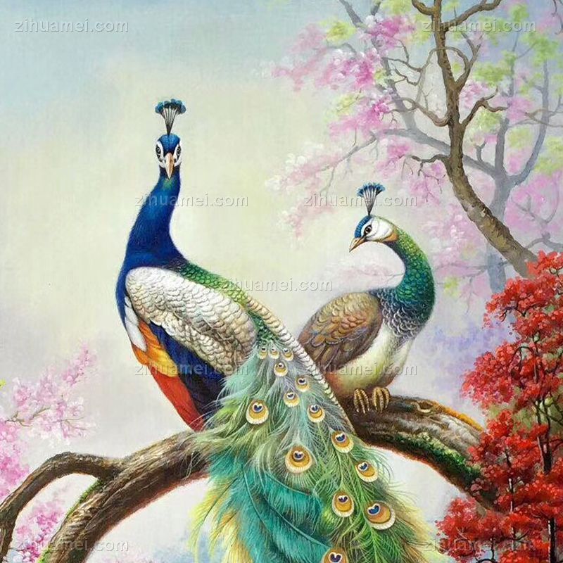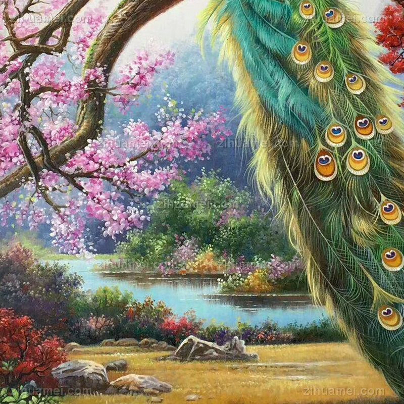 • 纯手工手绘油画欧式中式客厅玄关走廊卧室挂画孔雀风景有框装饰画A