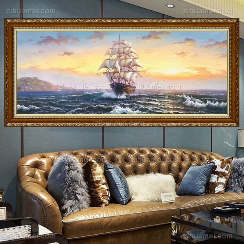 • 手绘油画欧式客厅挂画美式书房办公室壁画现代过道玄关画海景帆船A