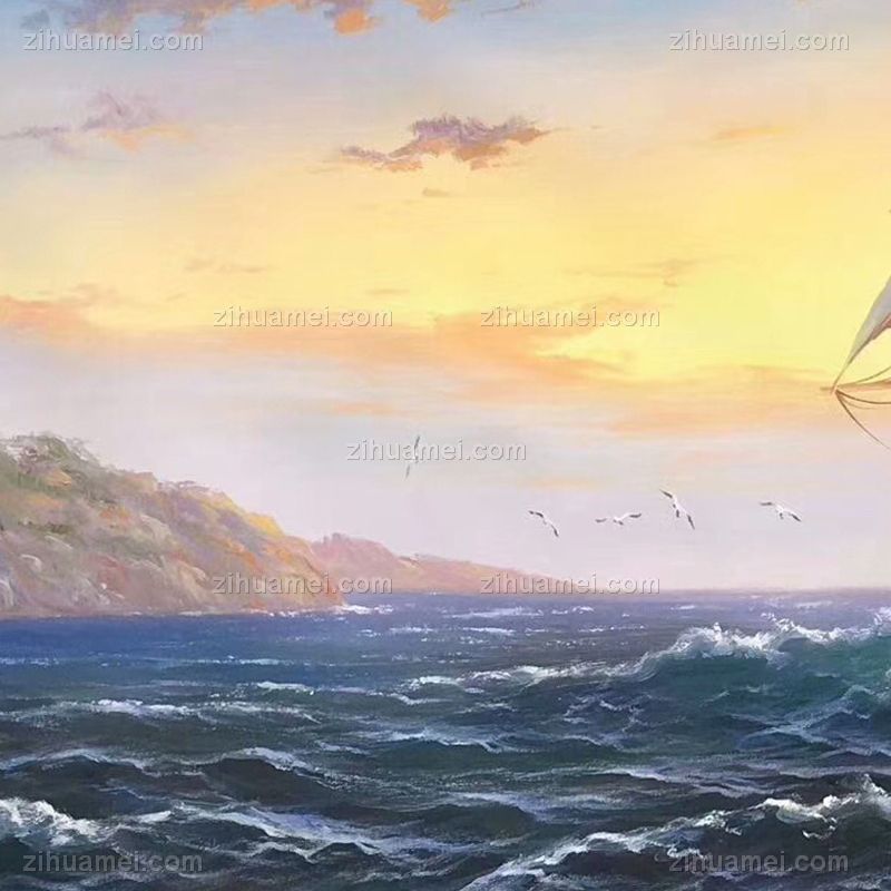 一帆风顺精品海浪帆船风景油画纯手绘油画 手绘