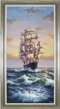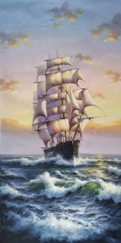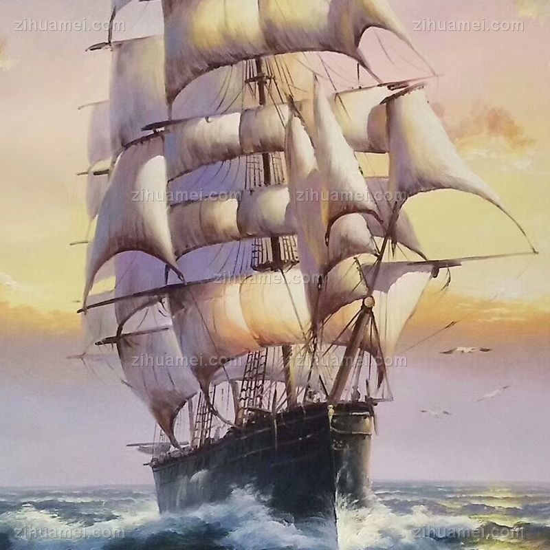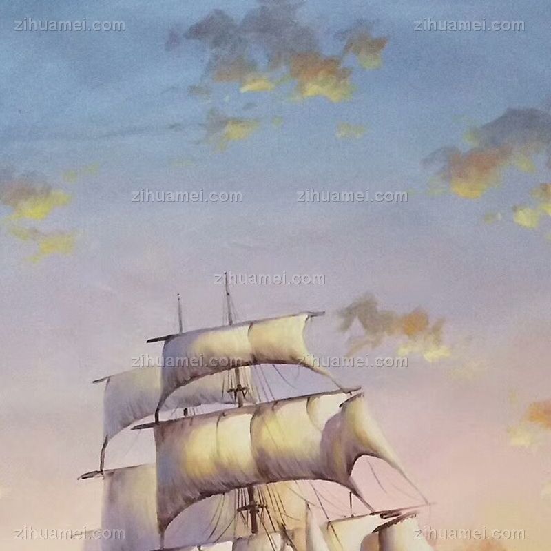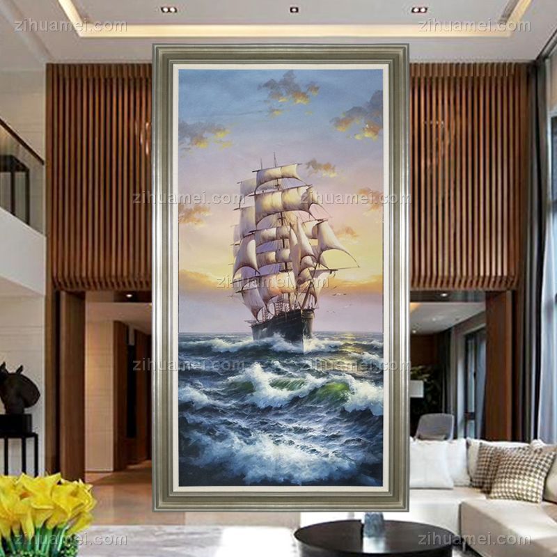 • 手绘油画欧式客厅挂画美式书房办公室壁画现代过道玄关画海景帆船D