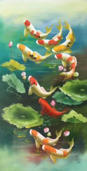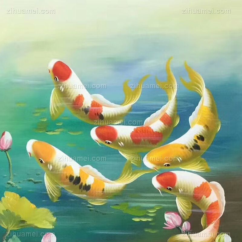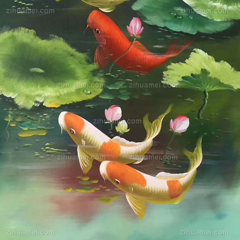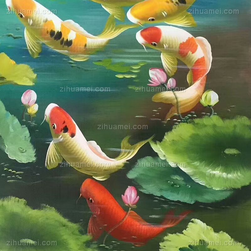 • 纯手绘手工 九鱼图 荷花 和谐 美满 团团圆圆 中式油画005