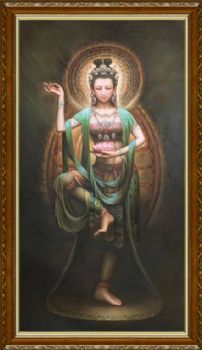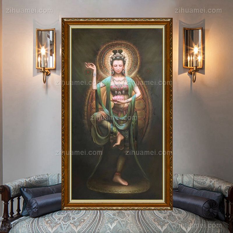 • 新中式玄关装饰画敦煌壁画观音手绘油画过道楼梯间挂画竖版