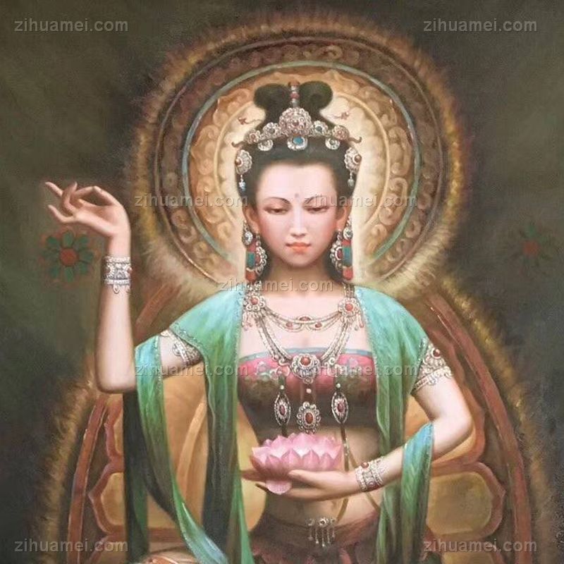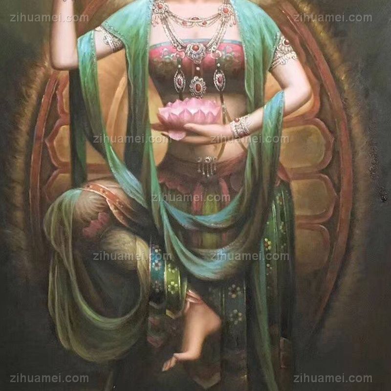 人物写实油画神教菩萨纯手绘油画实木画框 手绘