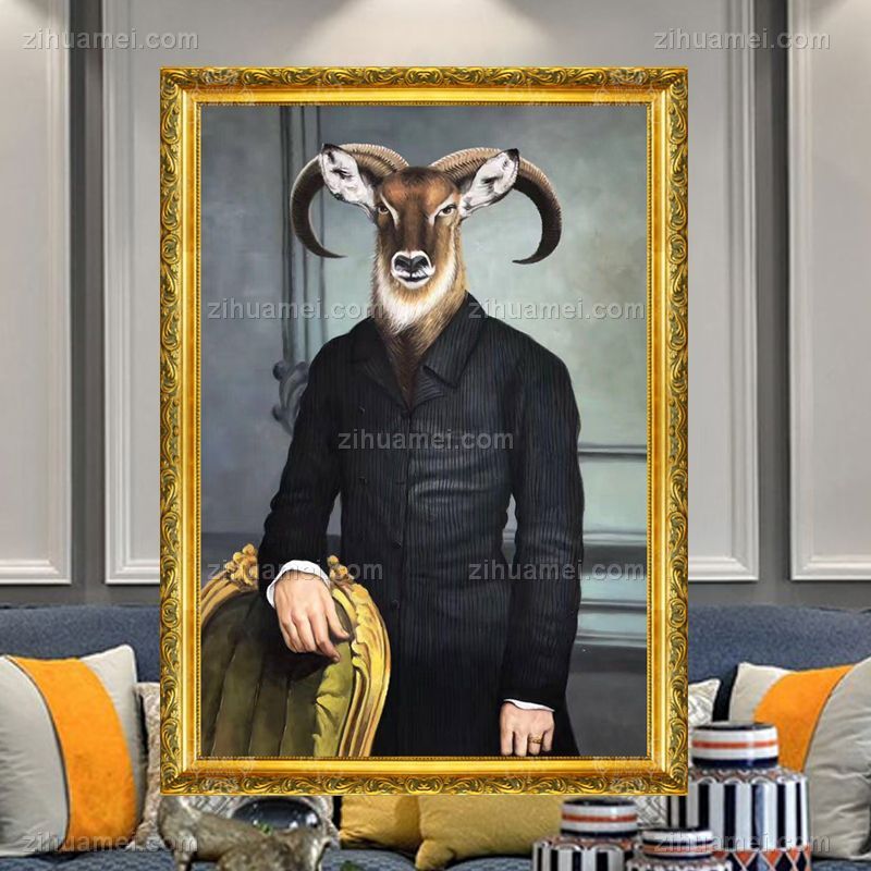• 纯手绘手工 现代油画艺术 羊头人身油画 家庭挂画 酒店挂画 办公室挂画A