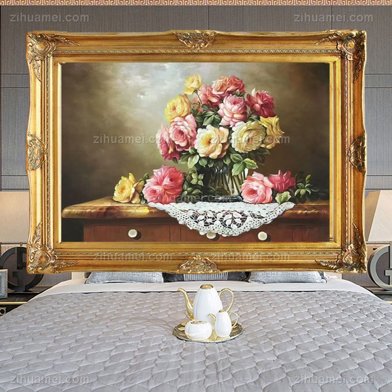 • 手绘油画欧式花卉美式壁画客厅玄关挂画C