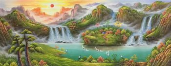 金山聚宝盆山水风景油画纯手绘大厅山水风景油画 手绘