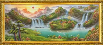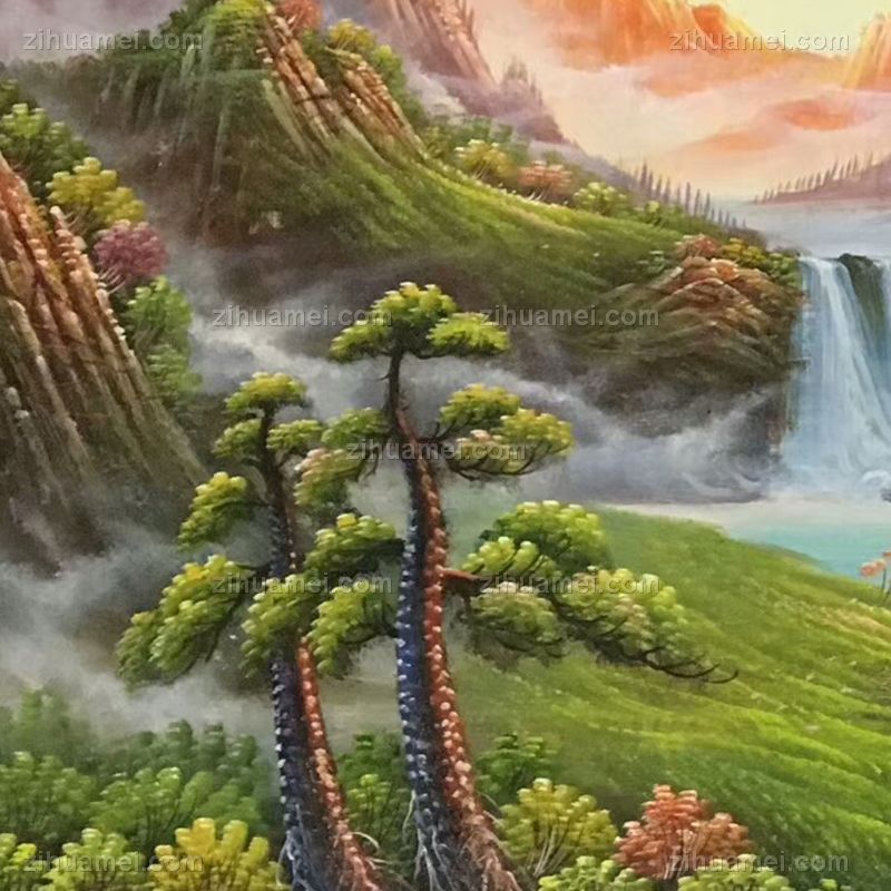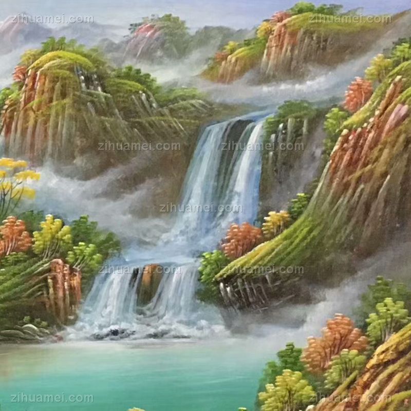 纯手绘风景油画山水画聚宝盆风景油画实木画框 手绘