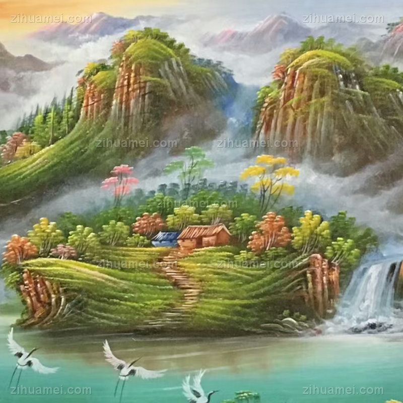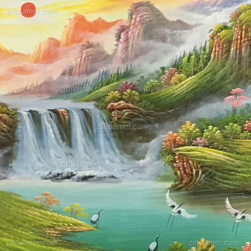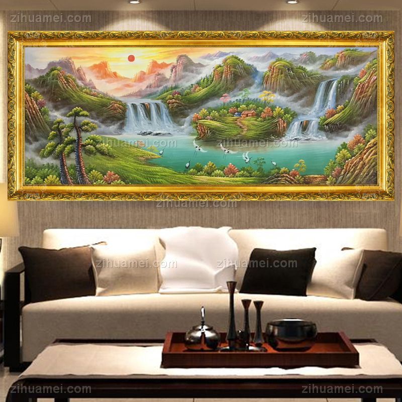 • 聚宝盆油画纯手绘中式欧式山水风景客厅装饰画办公室壁画风水挂画