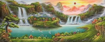 金山聚宝盆山水风景油画纯手绘大厅山水风景油画 手绘