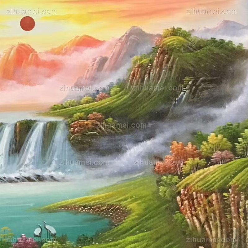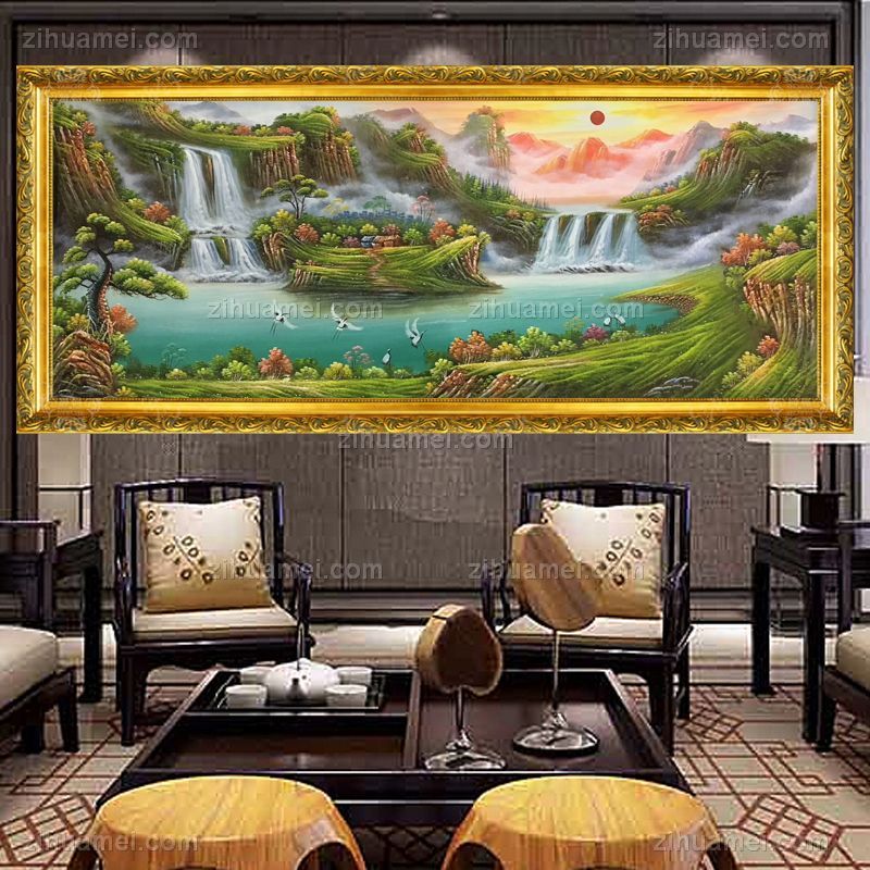 • 聚宝盆油画纯手绘中式欧式山水风景客厅装饰画办公室壁画风水挂画