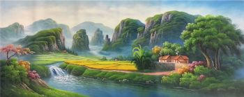 安居乐业山川风景油画纯手绘风景聚宝盆油画 手绘