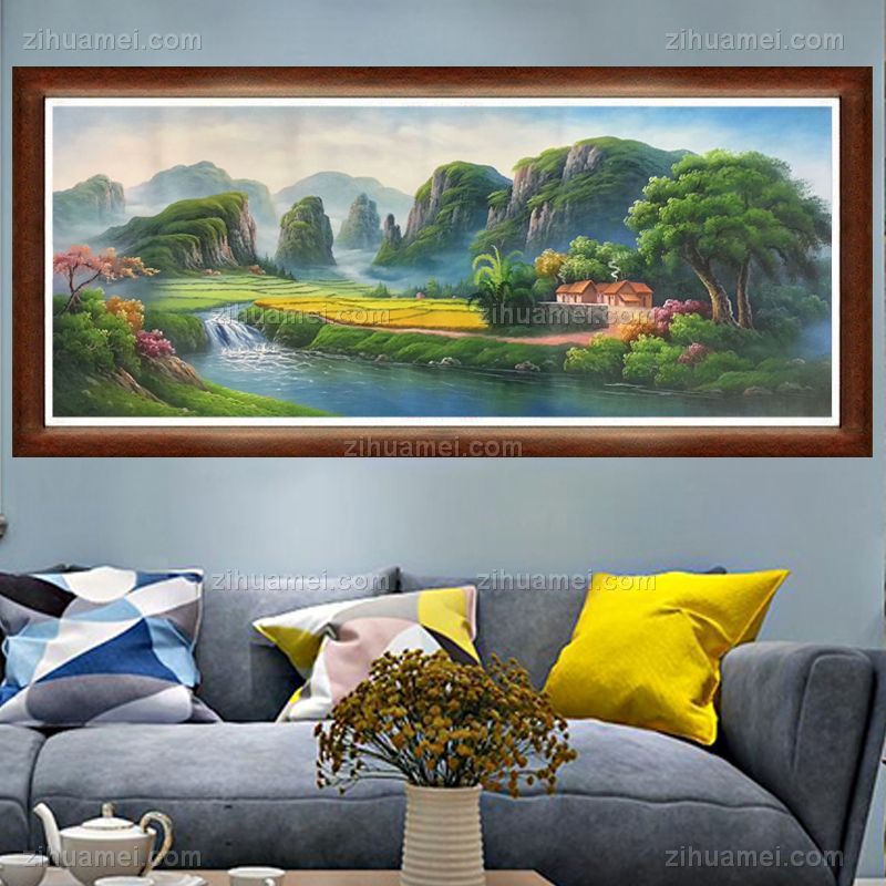 • 聚宝盆油画纯手绘中式欧式山水风景客厅装饰画办公室壁画风水挂画