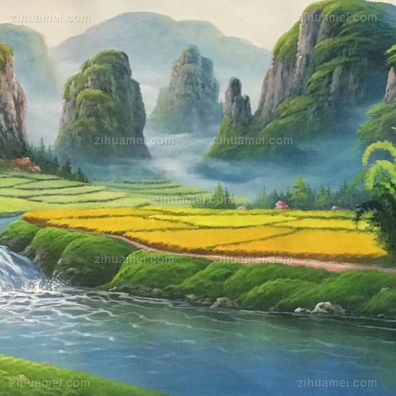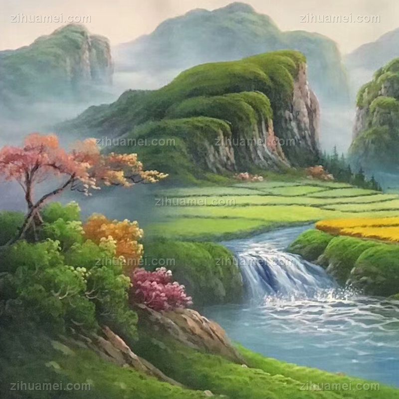纯手绘风景油画山水画聚宝盆风景油画实木画框 手绘